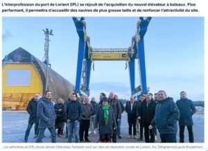 En ce 28 janvier 2026, une partie de ces derniers et adhérents de l’IPL, s’est réunie symboliquement sur l’aire de réparation navale pour une photo de « famille ». Crédit Photo Télégramme. https://www.letelegramme.fr/morbihan/lorient-56100/linterprofession-du-port-de-lorient-salue-le-nouvel-elevateur-a-bateaux-6973206.php